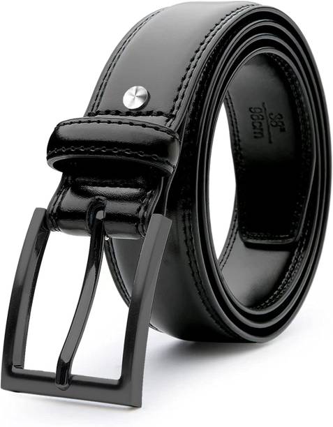 Black artificial leather belt with smooth texture, lightweight design, everyday essential accessory.