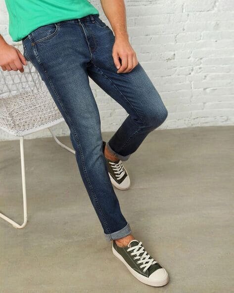 Tapered jeans with five pocket styling featuring classic design stretch comfort and sharp silhouette