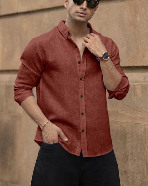 Regular fit shirt featuring subtle self design offering a stylish look with comfortable everyday wear