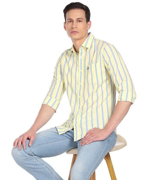 Trendy striped shirt with patch pocket offering a smart casual everyday style