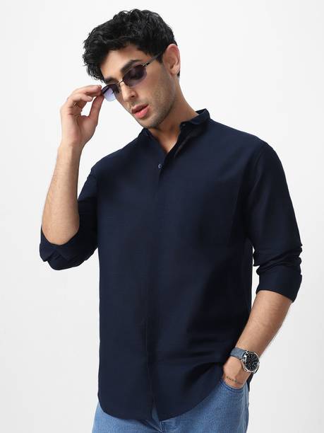 Men Regular Fit Solid Lapel Collar Casual Shirt