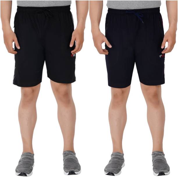 Pack of 2 Solid Men Black, Dark Blue Bermuda Shorts