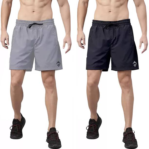 Pack of 2 Solid Men Dark Grey, Green Sports Shorts