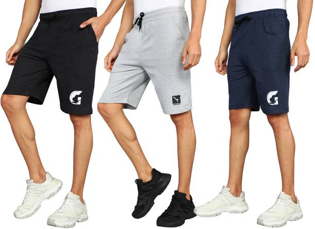 Pack of 3 Self Design Men Silver, Dark Grey, Blue Regular Shorts