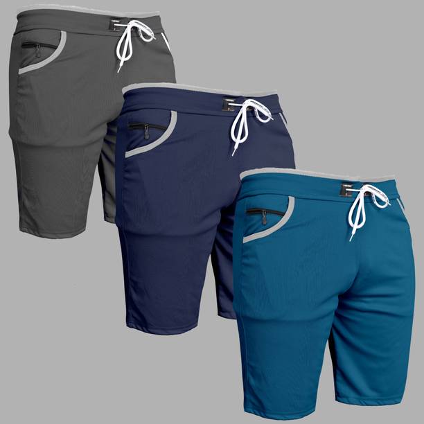 Pack of 3 Solid Men Grey, Dark Blue, Light Blue Casual Shorts