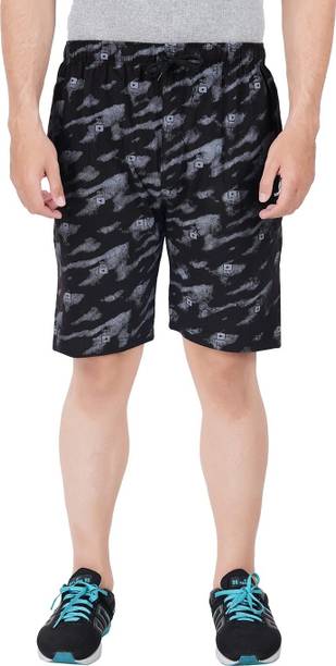 Printed Men Black Bermuda Shorts, Regular Shorts