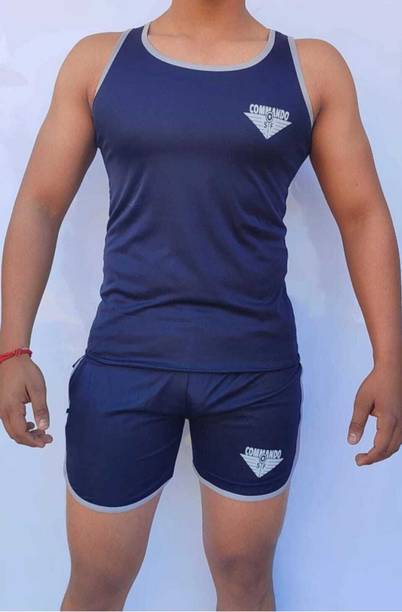 Printed reversible blue sports shorts for men, suitable for sports and casual wear