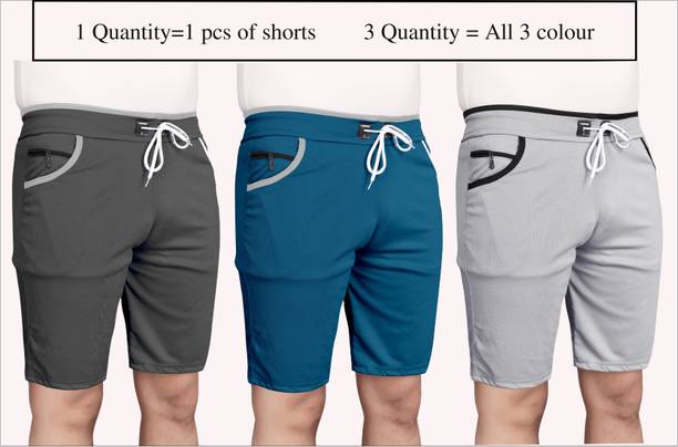 Solid Men Silver, Dark Grey, Light Blue Regular Shorts